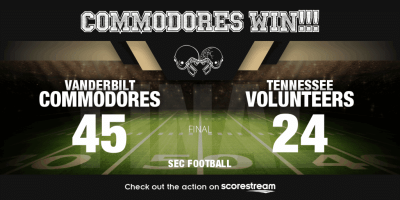 The Commodores controlled the second half after a 21-21 halftime tie. Vanderbilt’s balanced attack overwhelmed the Volunteers, who managed just three points after the break.